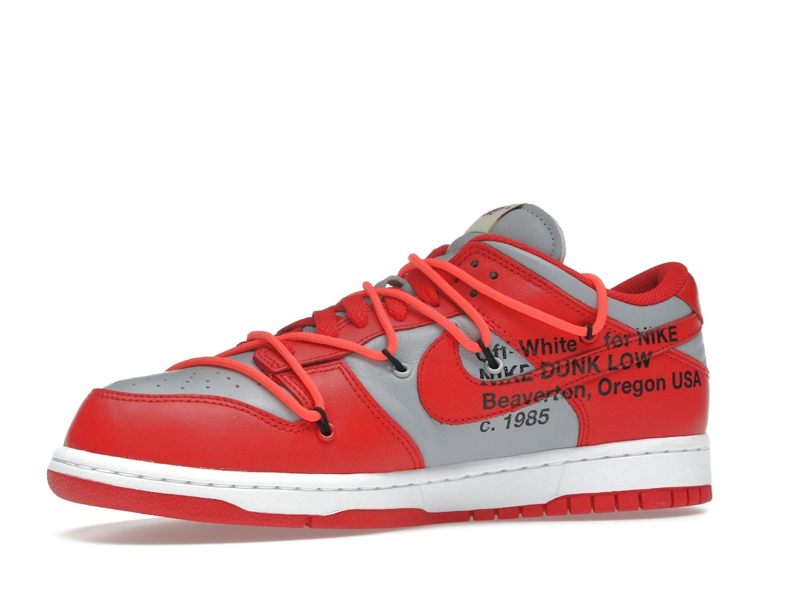 Scopri le Nike Dunk Low Off-White University Red, sneakers originali Nike disponibili su ResellPiacenza.